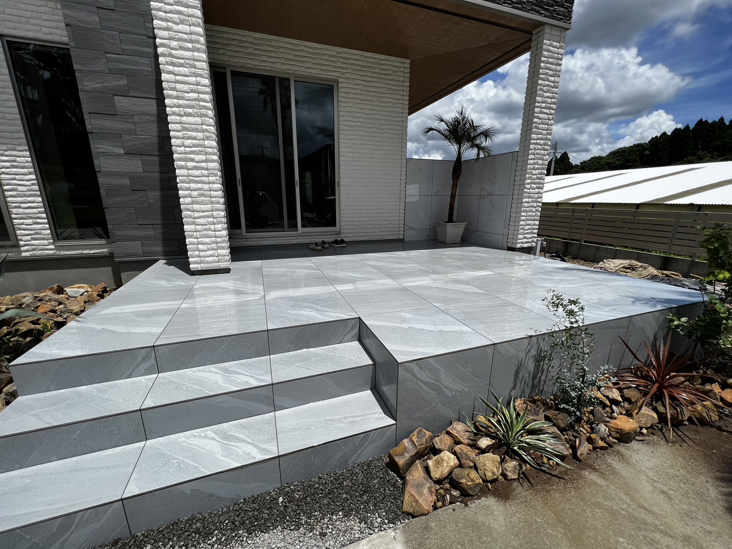 テラスデッキと植木鉢に弊社タイルをご採用いただきました。