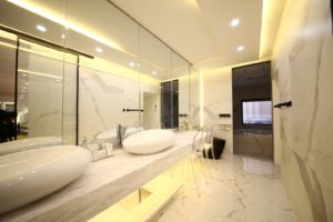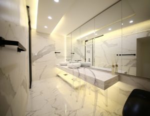 定番の人気商品、白マーブル鏡面タイルとなります。