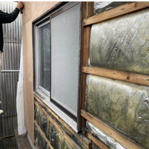 ご報告が遅くなりましたが、 梅雨の前にどーしても壁を直しておきたくて、 既存壁の痛んでる部分の撤去と、 透湿防水シートを貼ってきました!